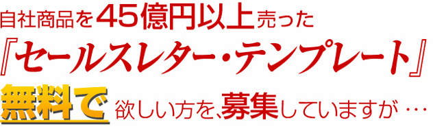 そんなことを思ったことがある方のために、このページでは『セールスレター・テンプレート』を無料で欲しい方を募集しています。右のフォームにメールアドレスを入力すると、テンプレートが無料プレゼントされます。